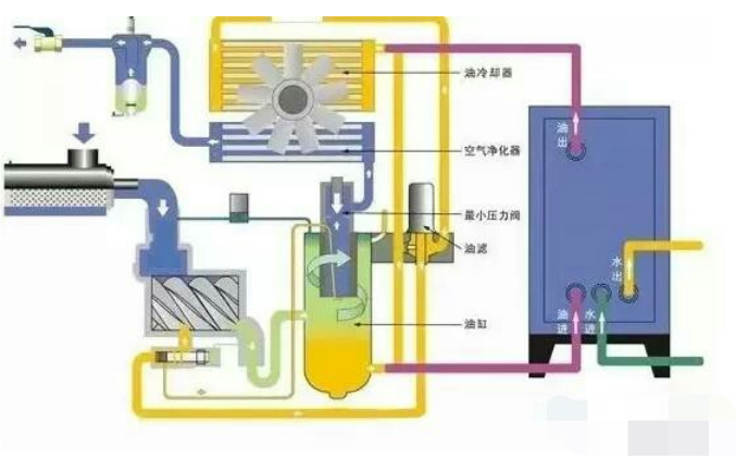原理:空壓機運行時產(chǎn)生大量熱能(約占輸入功率的80%),可通過熱交換器回收用于:(1)生產(chǎn)工藝加熱(如烘干、清洗);(2)鍋爐補水預熱;(3)車間或辦公室供暖。