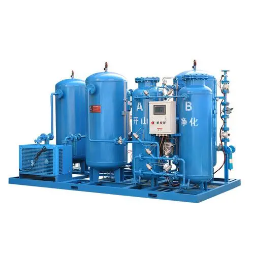 潔凈的壓縮空氣先進入空氣緩沖罐,再進入二個填裝吸附劑(進口碳分子篩,復合床結構)的變壓吸附分離塔,即制氮機。壓縮空氣由吸附塔底端進入,氣流經特殊的多層不銹鋼空氣擴散器擴散以后,均勻進入吸附塔,進行氧氮吸附分離,然后從出口端流出氮氣,這一過程經均壓和減壓(至常壓),吸附劑脫除所吸附的雜質組分(主要為氧氣),完成吸附劑的再生。二個吸附塔交替循環操作,連續送入原料空氣,連續生產氮氣。